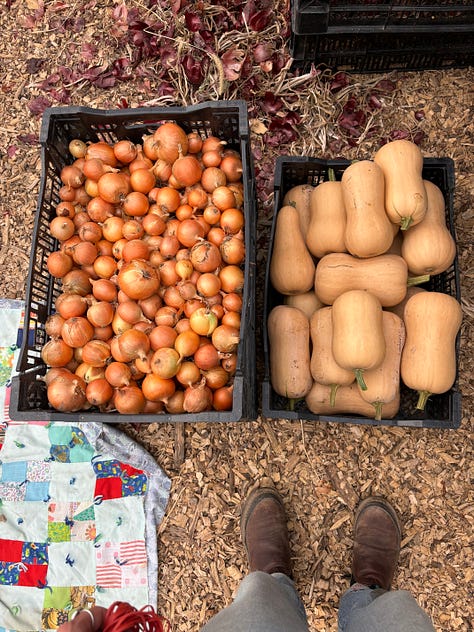 We look longingly towards the few months of snow-covered rest, but for now, the harvest days are the longest that they will be all year. Greens are washed, dried, and bagged under a construction light hours after sunset. The fields of storage are ready to be bulk harvested & packed away in the cooler. We are grateful that frost has held off. For many seasons, growers & animals alike have known these shortening days, autumn’s welcome, to be that of bounty & preparation. As October’s harvest moon approaches, I find comfort & a sense of companionship in this.