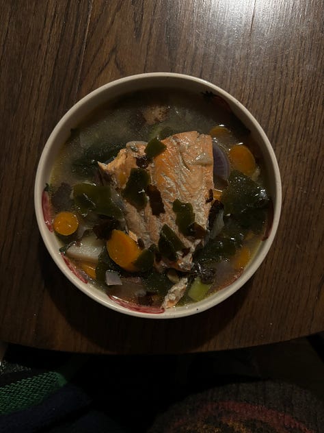 Salmon seaweed soup - I made something similar the other day with daikon & carrots! It was so lovely!